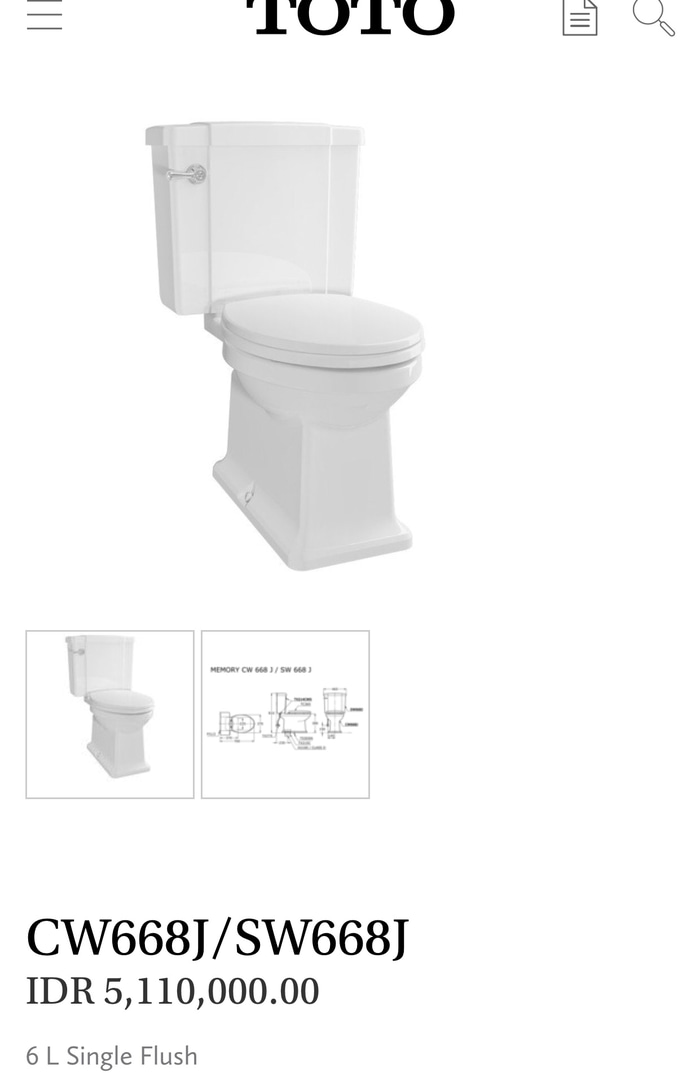 Closet TOTO Type CW 660 NJ/ SW660J Tutup softclosing TC 505 S Jarak rough in 23 cm Complete set
